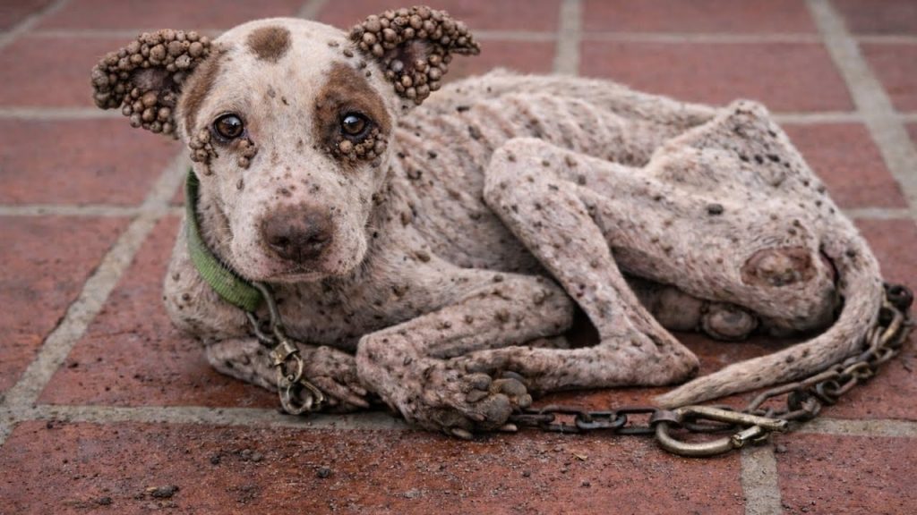 Up close, the reality of his condition was devastating. Valentino’s thin frame trembled with fatigue. His skin, once protected by a healthy coat, was overwhelmed by thousands of engorged ticks. These parasites had attached themselves everywhere—around his ears, along his neck, across his fragile torso—draining his blood and leaving him profoundly weakened. Each movement seemed to cost him what little strength he had left. He was not aggressive or fearful; he was simply spent, as if he had quietly accepted that this was how his story would end.