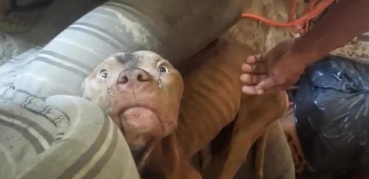 The new owners were unprepared for what they found. Inside that dark enclosure was a frail, malnourished dog whose body bore the visible marks of long-term mistreatment. Her fur was thin and patchy, her skin inflamed and wounded, and a heavy chain restrained her so tightly that escape had never been an option. Years of isolation had taken more than a physical toll. Angela’s eyes reflected a deep, instinctive fear of everything around her. Every sound, every movement, seemed to confirm the world as a place of danger rather than safety.