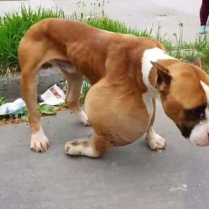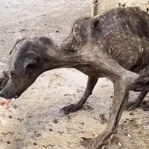 The video opens with a heartbreaking image that’s hard to forget—a frail, shivering dog, hunched in a cluttered corner of a busy residential neighborhood. She was barely clinging to life, her tiny body…